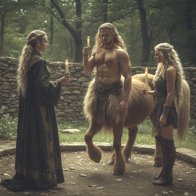 As she watches them she sees that the human that was looking for a intruder earlier is still looking around. Its like he knows she's here but cant see her. He looks a little more, then heads in with the rest of the humans and elves, he has a worried look about him. The Centaurs, Elftaurs and Orctaurs are now standing in a semi-circle by the manor door. The Elftaur and Orctaur are adamantly discussing something with the Centurs that Mirian cannot hear. Its as if they dont want the Humans and Elves inside the the manor to hear them. They point towards the alter, then at the Taurs. Mirian is getting the idea that they want to exclude the humans and elves from something to do with the alter. Mirian wishes she could cast one of her spells, but she is afraid they would hear her since she has to speak her spells.